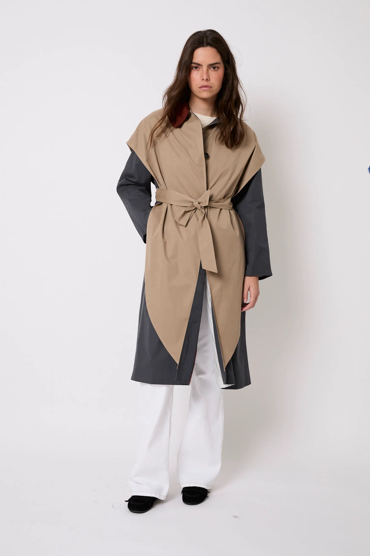GABARDINA CAPA MIX TRINCHERAS TOPO